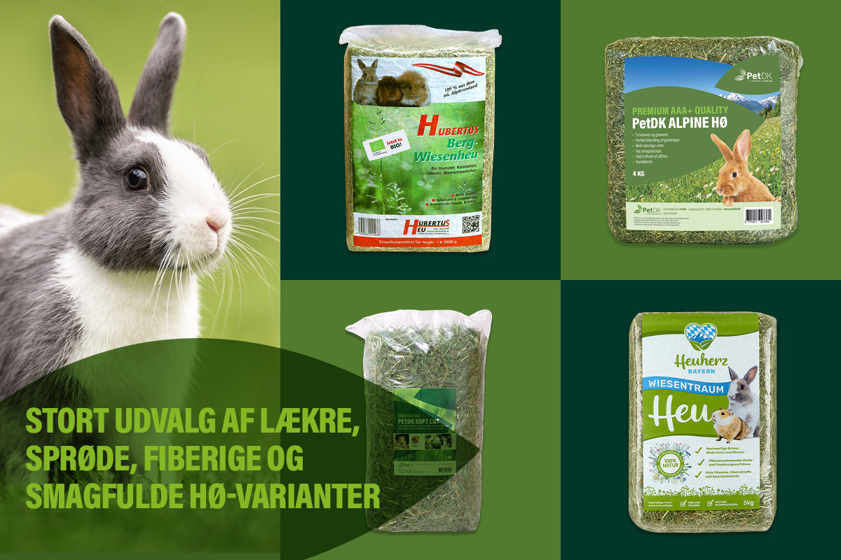 F.eks. indeholder PetDK Alpine Hø op til 25 forskellige græsarter og urter hvilket dækker ethvert behov for fibre, vitaminer og mineraler.